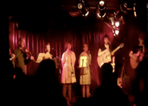 The band assembled for this evening comprised ringleader Stephen Cracknell on guitar and vocals, Sam Carter on guitar and vocals, Rob Spriggs and Dan Mayfield on viola and violin respectively, Hannah Caughlin and Helene Bradley on vocals and Sarah Scutt on accordion and recorder. They did a fine rendition of Corn Rigs, one of the better-known songs from the soundtrack and, like the first one, based on a ballad by Robert Burns, but this time of a more earthy and sensual variety, in keeping with most of the rest of the soundtrack songs: