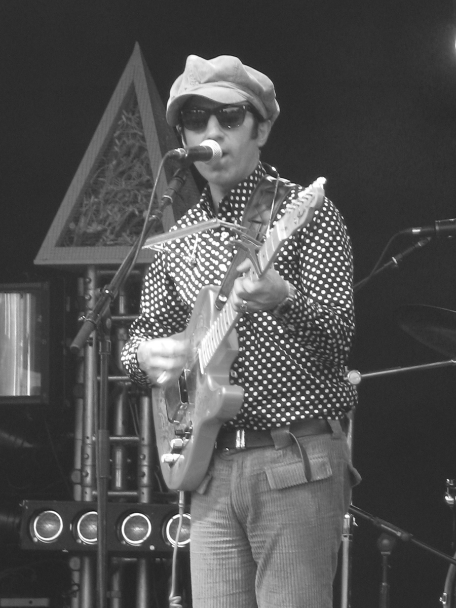 As the weather was now sunny and warm, we lounged around before going to the main outdoor stage to see Kentish troubadour Pete Molinari, wearing ‘the other’ spotty shirt from the one I saw him in at the Hop Farm Festival (thanks to Mr P for the photo, left). We were treated to a similar set, but it was all delivered with verve and style, despite a few sound problems initially. He started with A Train Bound For Glory, CC On My Mind and Streetcar Named Desire from the latest album, followed by relative oldie Love Lies Bleeding and a host of other toe-tappers – Easy Street, I Came Out Of The Wilderness, Absolutely Sweet Louise and Heartbreak Avenue. A Little Less Loneliness and All I Could Do Was Cry rounded off the all-too-brief set, but it had been an object lesson in catchy, straight-up country-folked rock ‘n’ roll. I’m looking forward to seeing his full set at the Jazz Café next month.